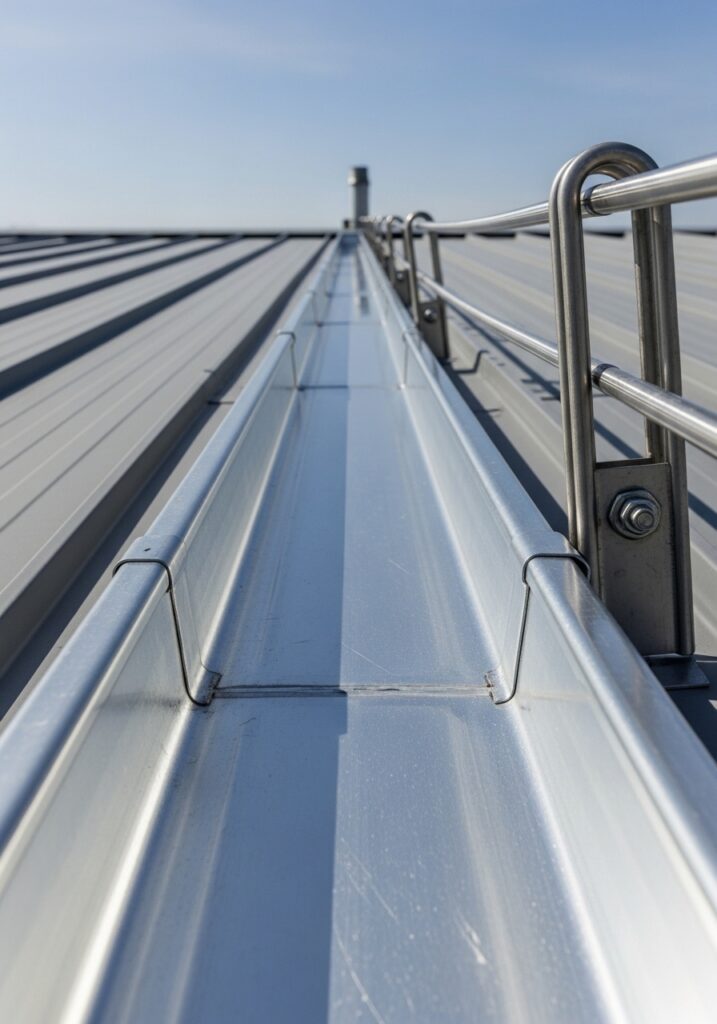 Os rufos são as “dobras” que vedam o encontro do telhado com as paredes. Com o tempo, os selantes ressecam e os parafusos podem afrouxar devido à dilatação térmica. A inspeção preventiva identifica essas frestas antes que a primeira gota caia dentro da fábrica.